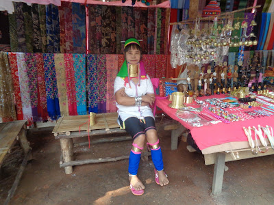 Pois, contaram-me que esta comunidade vive em condições muito precárias, com baixíssimos índices de desenvolvimento humano, nomeadamente no que diz respeito à habitação, saúde e escolaridade. Os seus rendimentos são diminutos e provêem basicamente do artesanato (tecelagem), área na qual se tornaram exímias como tivemos oportunidade de constatar.Também ouvi dizer que estão confinados a uma espécie de reserva da qual não se podem ausentar. Pior que tudo isso, diz-se, as mulheres não poderiam retirar as argolas que usam à volta do pescoço e, caso o fizessem, perderiam algum apoio (financeiro ?) que lhes é facultado pelo estado que, deste modo, as mantém como chamariz turístico. Verdade?